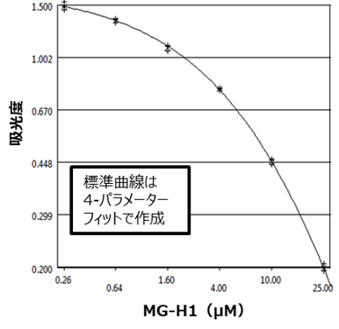 検体中のMG-H1量が多いほど、吸光度は低下します。