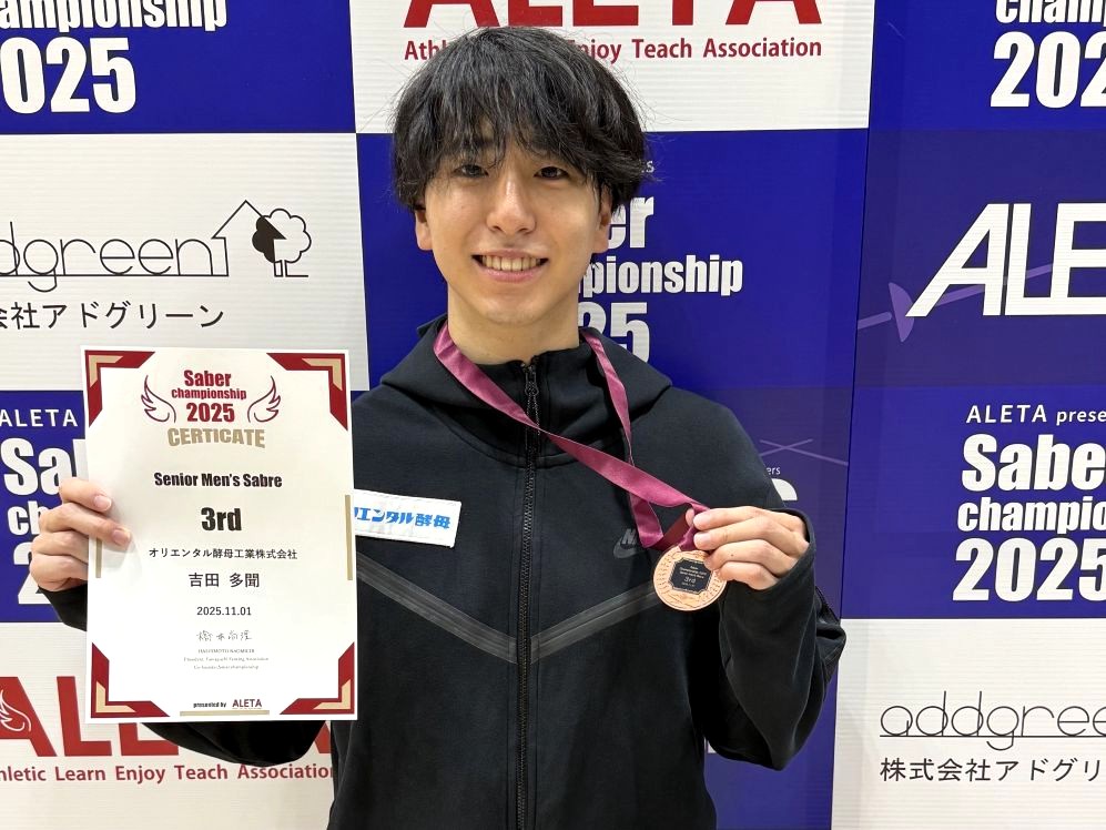 11月1日~2日に開催されたALETA全国サーブルチャレンジカップ山口県大会において当社アスリート社員の𠮷田多聞選手、佐野佑衣選手が銅メダルを獲得しました!